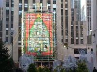 Glenn上院議員が除幕式を行った金の星がツリーのてっぺんに設置されました。飾り付けの様子は幕で隠してしまうんですね。それから、手前の広場のところには、毎度おなじみの天使のオーナメントがすでに設置してありました。あとは、ツリーの飾り付けの完成を待つばかり。