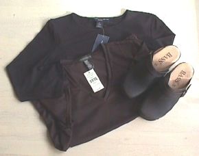 LOFT」で、前にスリットの入ったストレッチスカートを買いました。通常だと税込みで50ドル強なのが、セールと税なしで40ドルを切ったのはお買い得感十分。上のセーターは、これがあるなら買うのを待っていたのに、ちょっと前にディスカウントの「LOEHMANN'S」で買ってしまった七分袖のカシミアシルク。今年の秋は、この七分丈の袖とストレッチ素材が流行のようで、セーターの他にも、コットンストレッチの七分袖シャツやストレッチ素材のスカート、パンツがかなり出ています。長袖は普段まず長過ぎて買えないのですが、これなら腕の短い私たちでも大丈夫なので、ちょっと嬉しいかも。短いといえば、この夏、ふくらはぎくらいのカプリパンツが流行っていたのですが、それを知らずに小さいサイズと間違って試着してしまったところ、くるぶしがちょこっと出て、まるで、つんつるてんになってしまったズボンをはいた小学生のようでした。短ければなんでもいいというものでもないのですね。